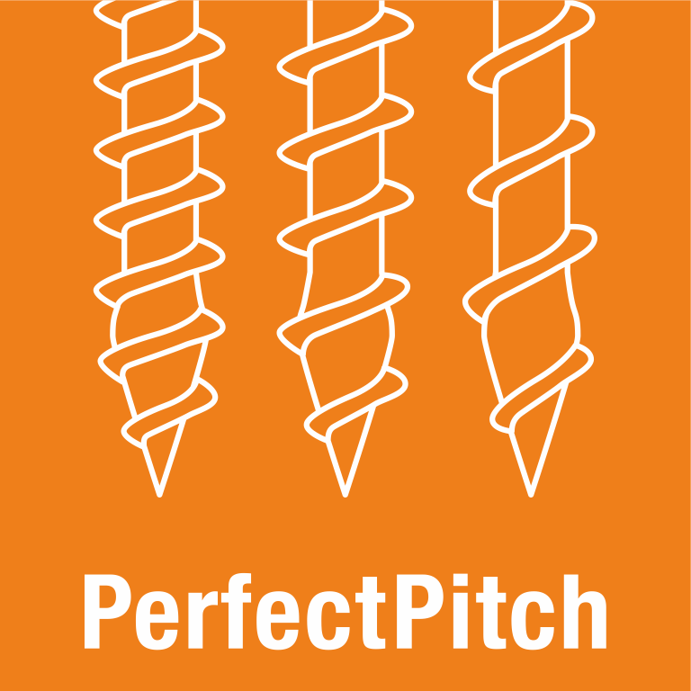 PerfectPitch beschreibt die einmalige Gewindesteigung der HECO-TOPIX®-plus Schrauben. Sie ist an die Länge der Schraube ideal angepasst und ermöglicht somit eine perfekte Leistung der Schraube.