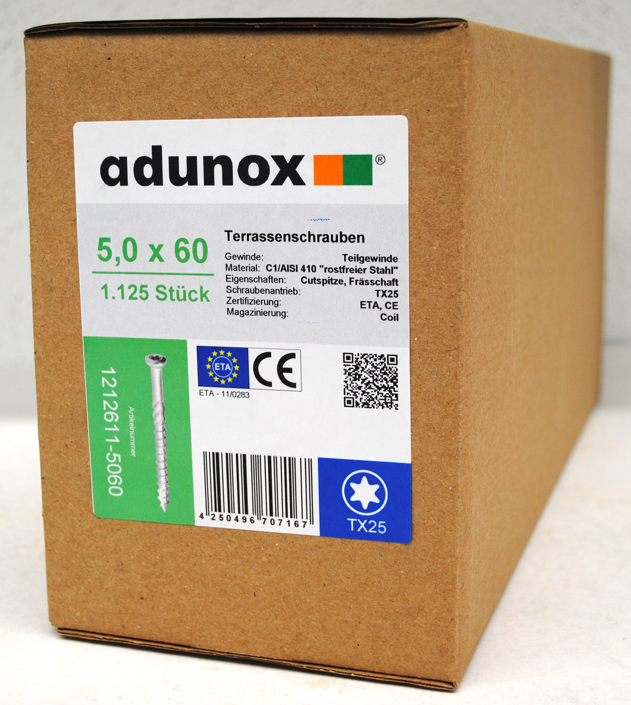 Produktinformationen "Terrassenschrauben | rostfreier Stahl C1 | Teilgewinde | ETA | TX25 | magaziniert Coil | 5,0x60 | 1.125 Stk"